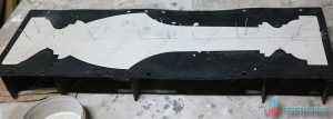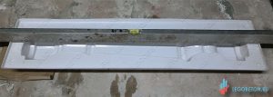 - Форму с находящимся внутри изделием-вкладышем поворачиваем тыльной стороной вверх и накрываем стрейч-пленкой с целью защиты поверхности от контакта с монтажной пеной. Это позволит многократно использовать опалубку заменяя только форму-вкладыш (из АБС или УПП). Также упрощается процесс распалубки готового изделия.