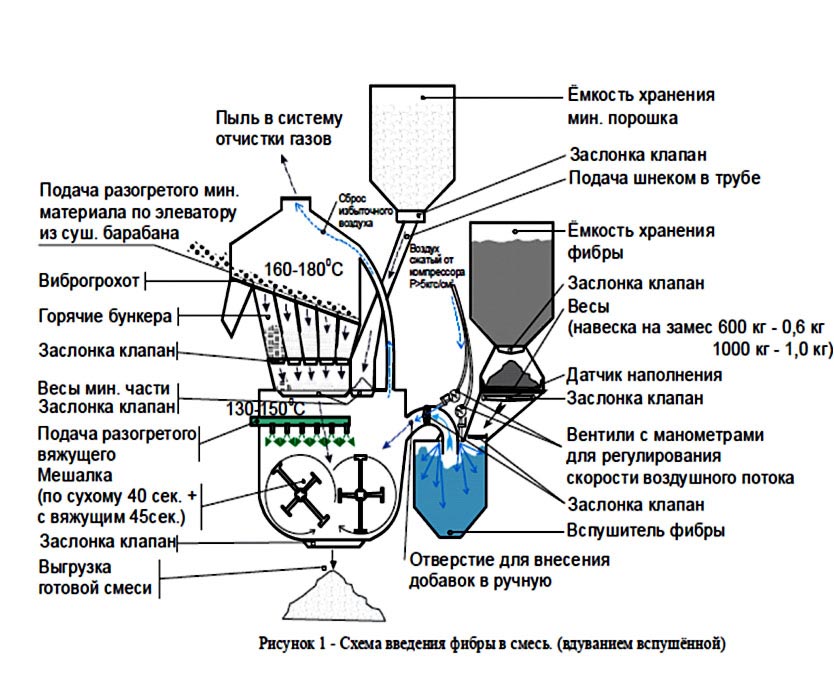 Основной проблемой при использовании ПАН фибры или углеродной фибры для асфальтобетона является отработка способа равномерного введения фибры в смеситель асфальтобетонного завода. Для этих целей разработаны и успешно используются установки по введению фибры с использованием сжатого воздуха. С помощью такой установки обеспечивается введение фибры в смесь в количестве 0,1% сверх исходной массы асфальтобетонной смеси.